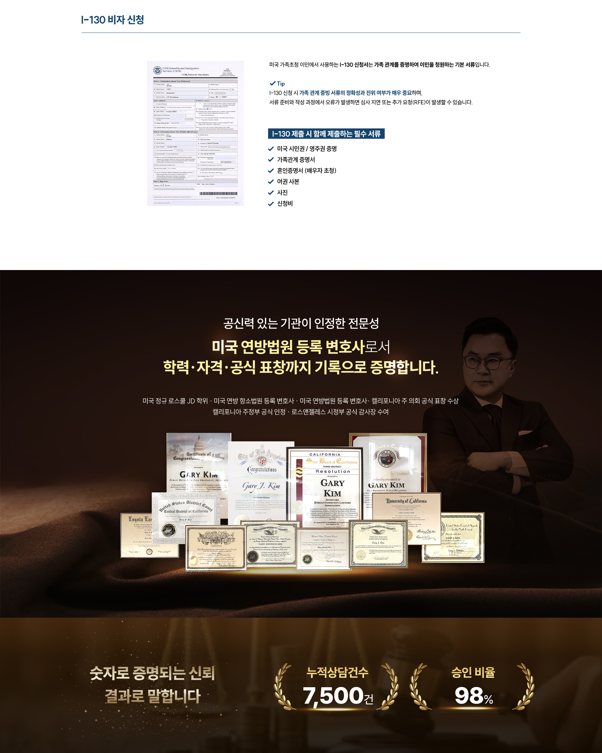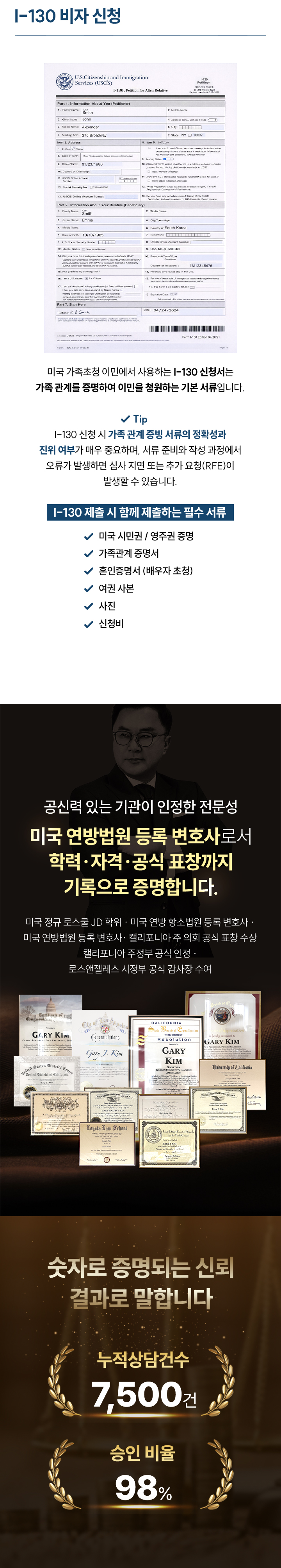 | 미국 영주권자 | 배우자, 부모, 21세 미만 미혼자녀(IR) / 21세 이상 미혼자녀(F1) / 기혼자녀(F3) / 형제자매(F4) |